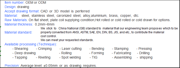 - Completely equipments include cutting,bending,stamping,CNC,welding etc.
